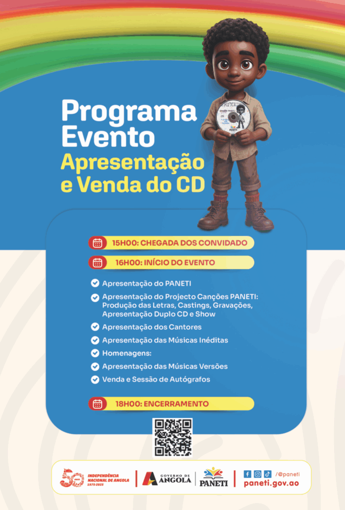 No dia 12 de junho, às 16h, no Memorial António Agostinho Neto, será lançado o duplo CD Canções PANETI, com o tema: “Melodias que Protegem: Canções para Cuidar da Criança”.